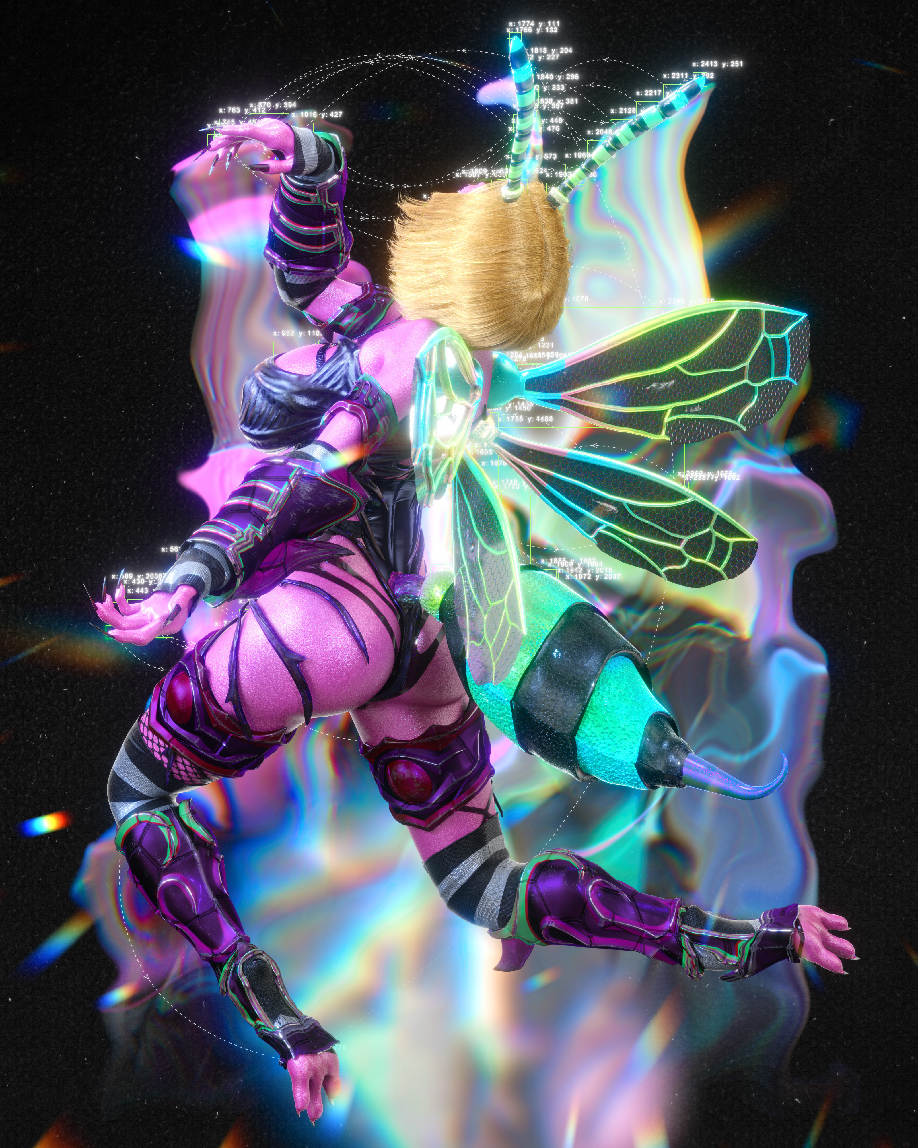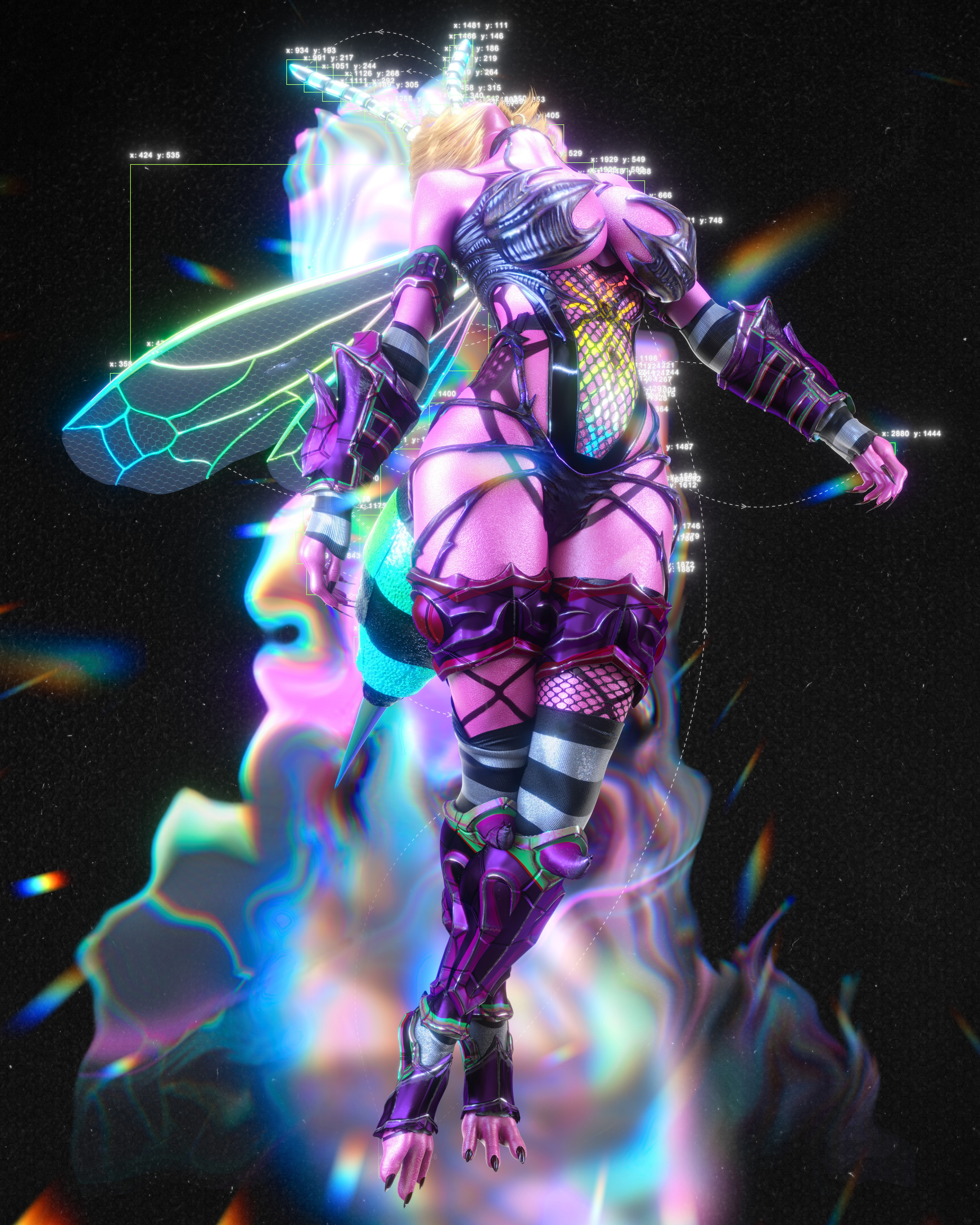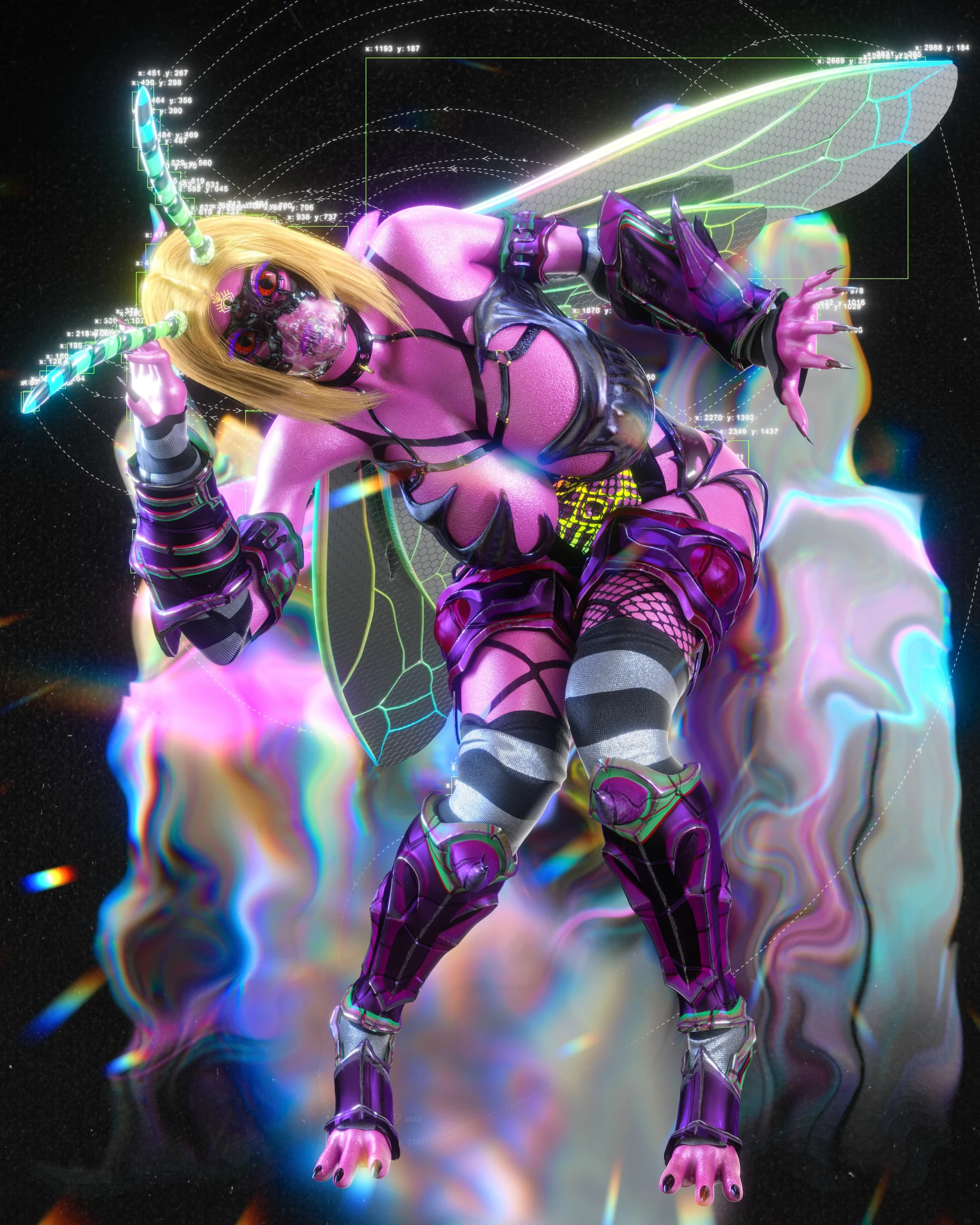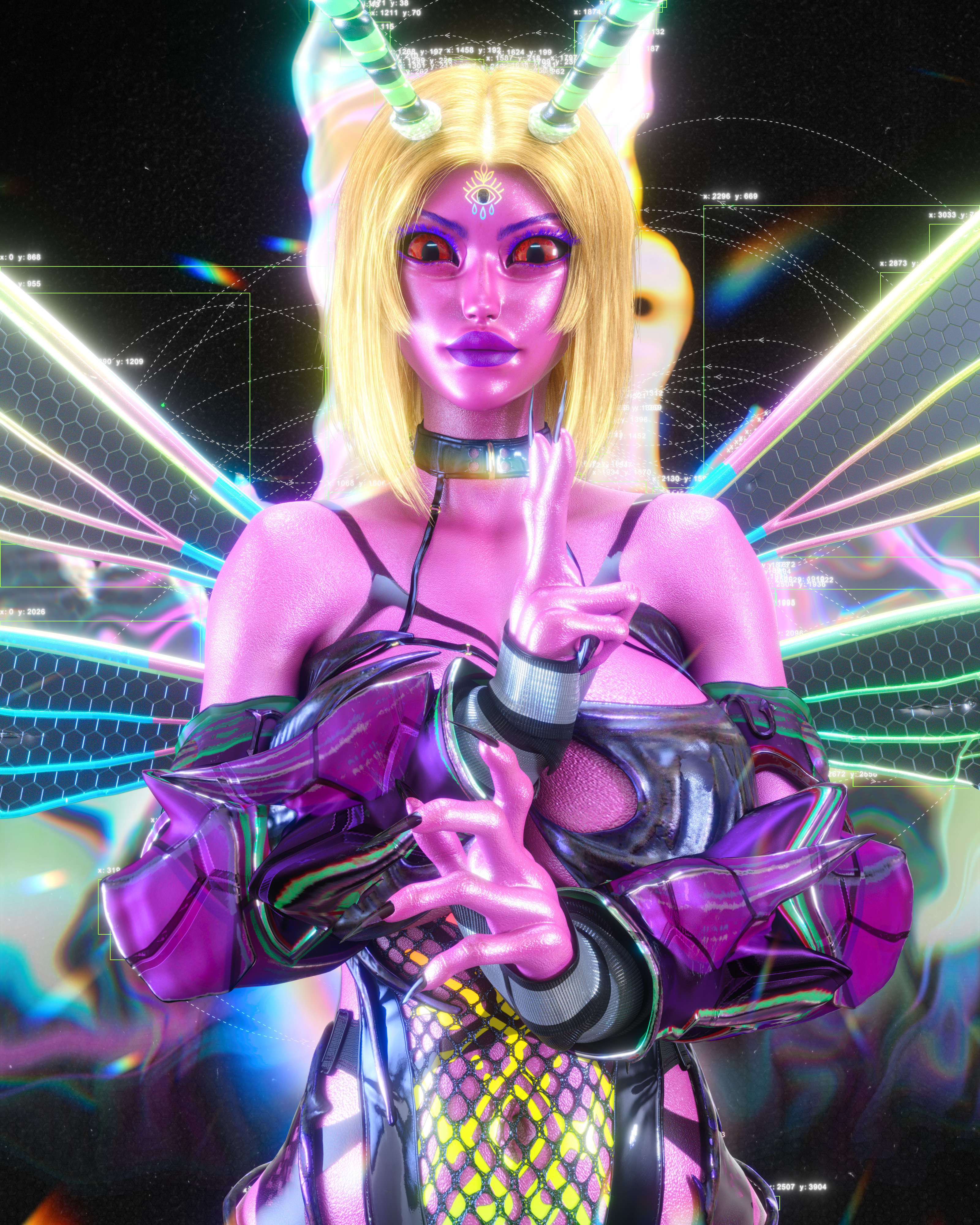 Mirix is a psionic wasp-human aberration, born of no hive native to this planet. Her presence is a soft hallucination/aromas that tilt perception and thoughts that hum into alignment. She is quiet, observant, and dangerously precise, a lone signal wandering through dense noise.